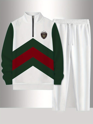 2pcs Set Men's Sportswear Set Contrast Stitching Design - Stand-up Collar Half-zipper Sports Top & Drawstring Sweatpants, Loose Fit, Fleece Fabric Suitable For Autumn And Winter Fashion And Warm Men's Holiday Gifts