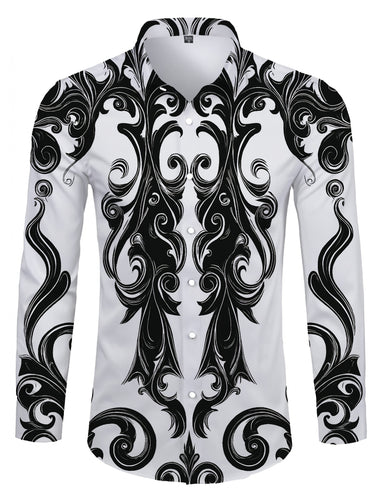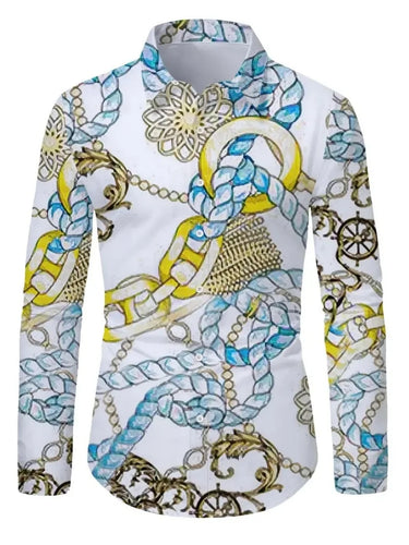 Men's retro long sleeved shirt, luxurious gold Baroque chain pattern