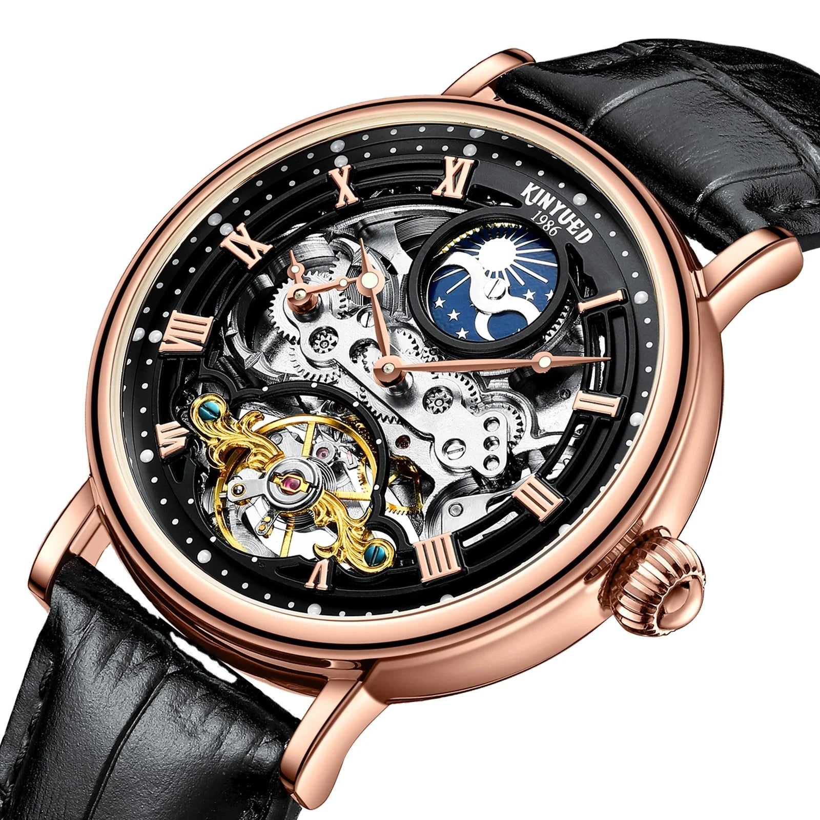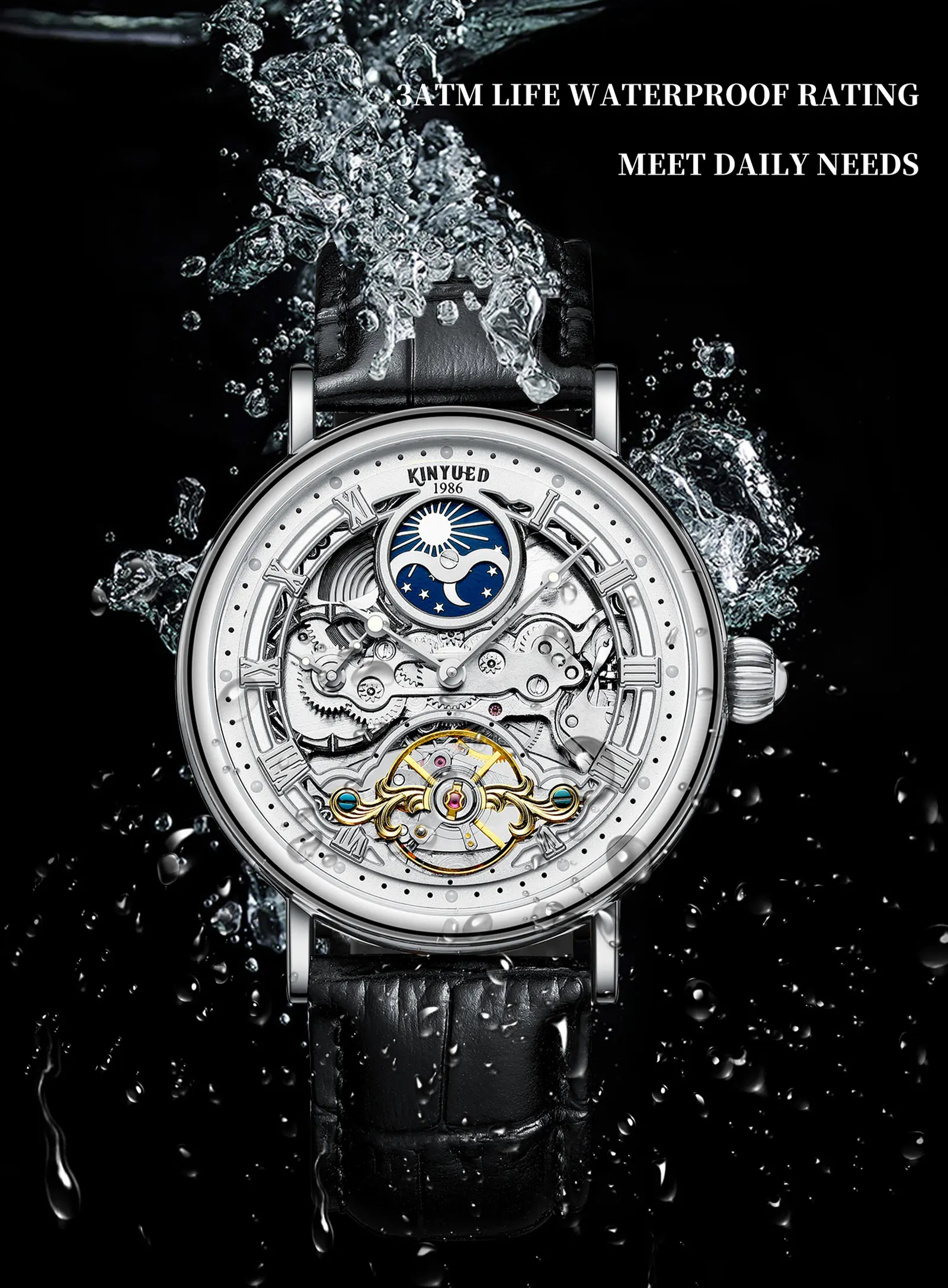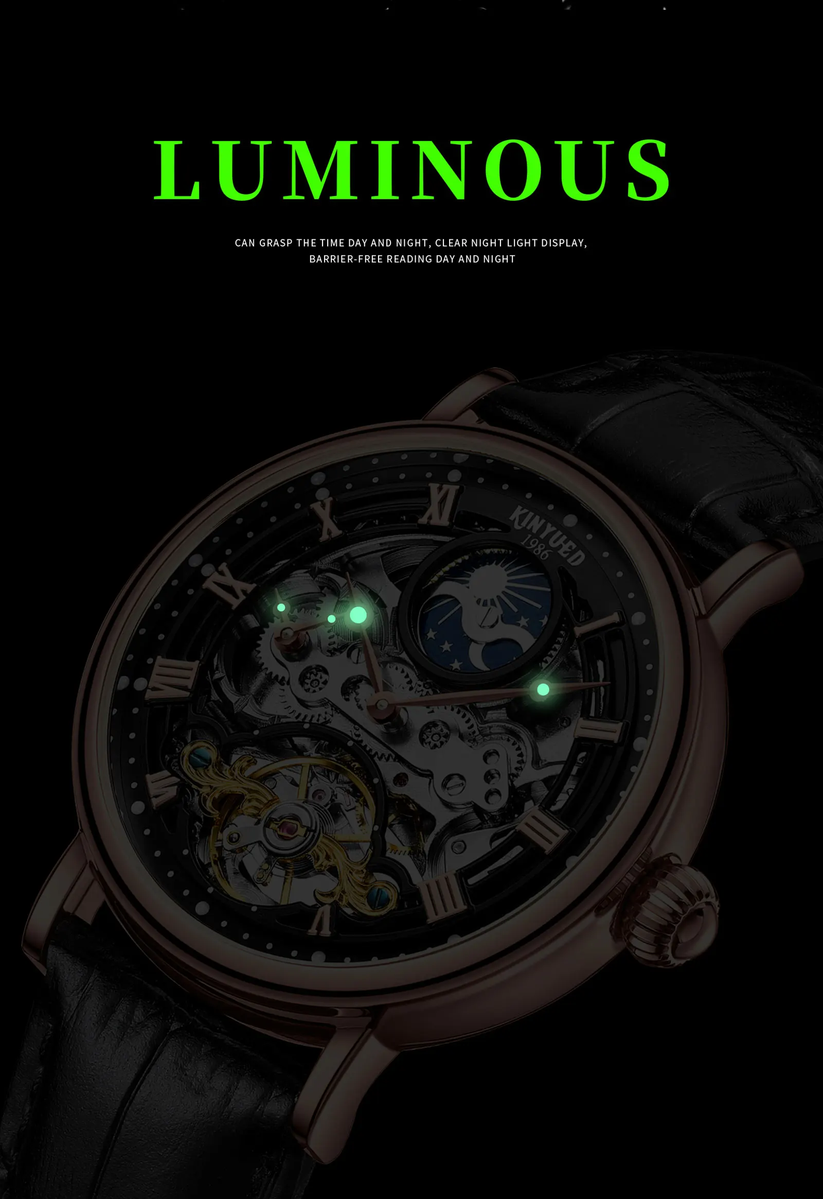 Feature: Perpetual Calendar,Luminous,Waterproof,hollow out,Moon Phase,Alarm,tourbillon,Power Reserve,Water Resistant,Auto Date,Luminous Hands,Day/Date