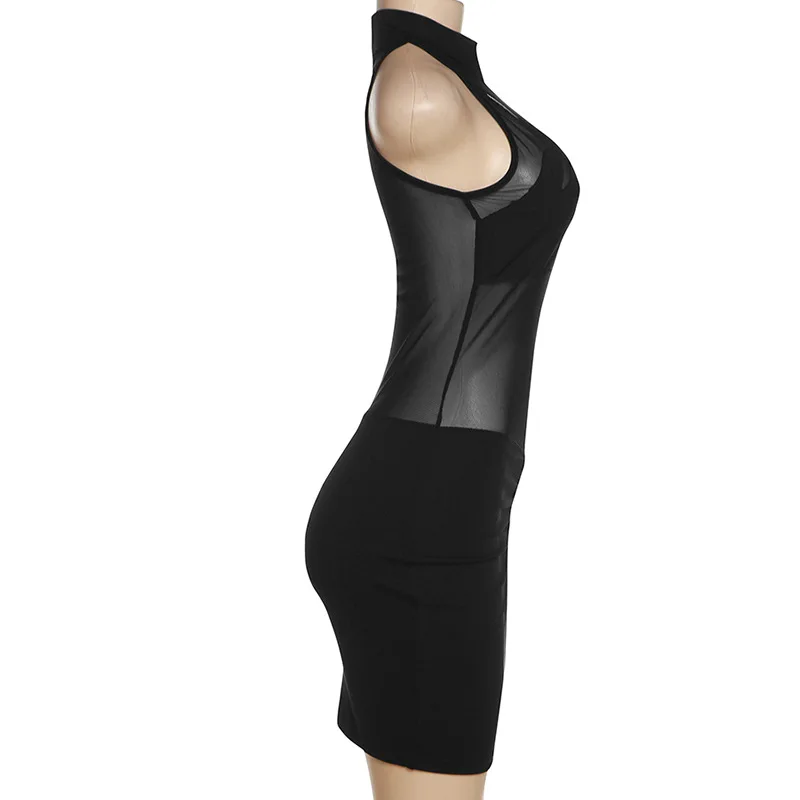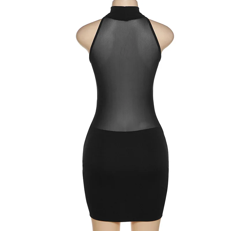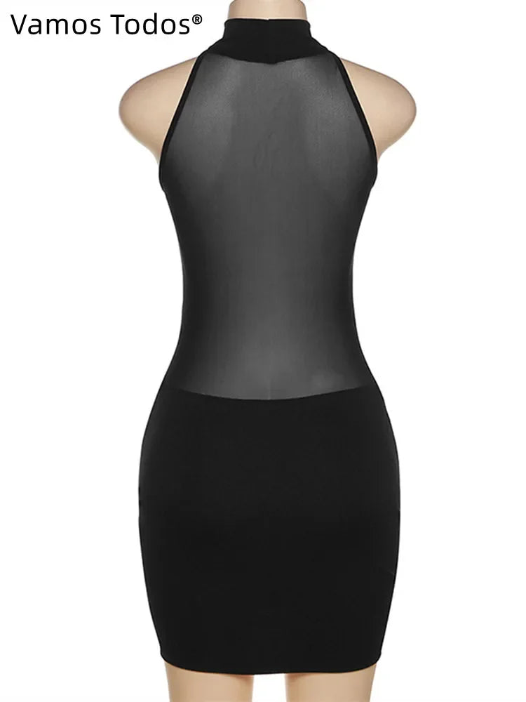 Solid Black Dress For Women Y2k Clothes See Through Mesh Sexi Night Dress Hot Club Outfit O-neck Sleeveless Vestidos De Mujer
